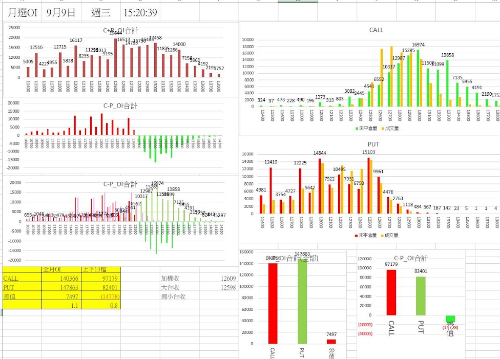 [二] 盤前及盤中圖資收集:[三] 今日盤中籌碼等圖資收集:[四] 今日盤後籌碼圖資收集[五] 選擇權未平倉圖例及明日一些價格參考:[六] 盤中行情及盤後想法: